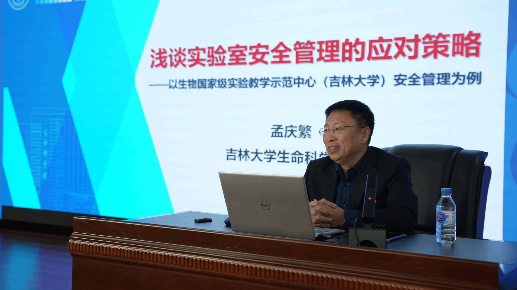 教育部高等学校实验室安全检查专家组成员、吉林大学实验室安全宣教团团长、吉林大学生物国家级实验教学示范中心常务副主任孟庆繁作了题为《浅谈实验室安全管理的应对策略》的专题讲座。孟庆繁深刻分析了当前高校实验室安全面临的严峻形势,剖析了近年来高校实验室安全事故案例的惨痛教训和原因,强调实验室安全在科研工作、教学活动以及师生生命安全中的重要性,并就如何筑牢实验室安全防线、推进实验室安全治理,提出了针对性的对策建议和系统化的工作思路。