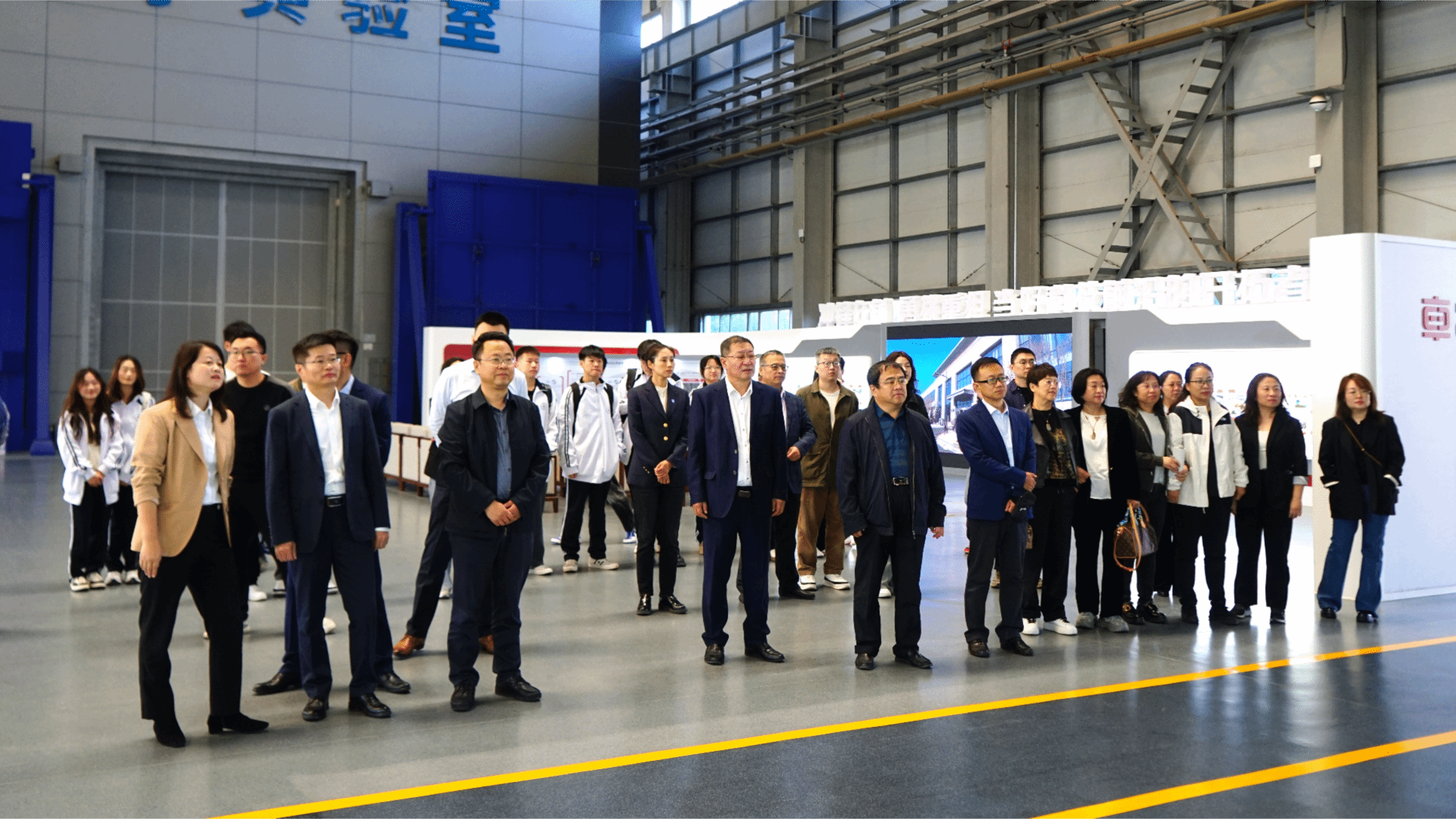 师生代表一行参观了国家工程实验室和我国首个整车级车辆声学实验室。在全消声实验室,亲身体验了接近“零分贝”的静谧空间,了解为列车设备辐射声功率测试以及声学传播机理的研究提供良好的声学环境情况。