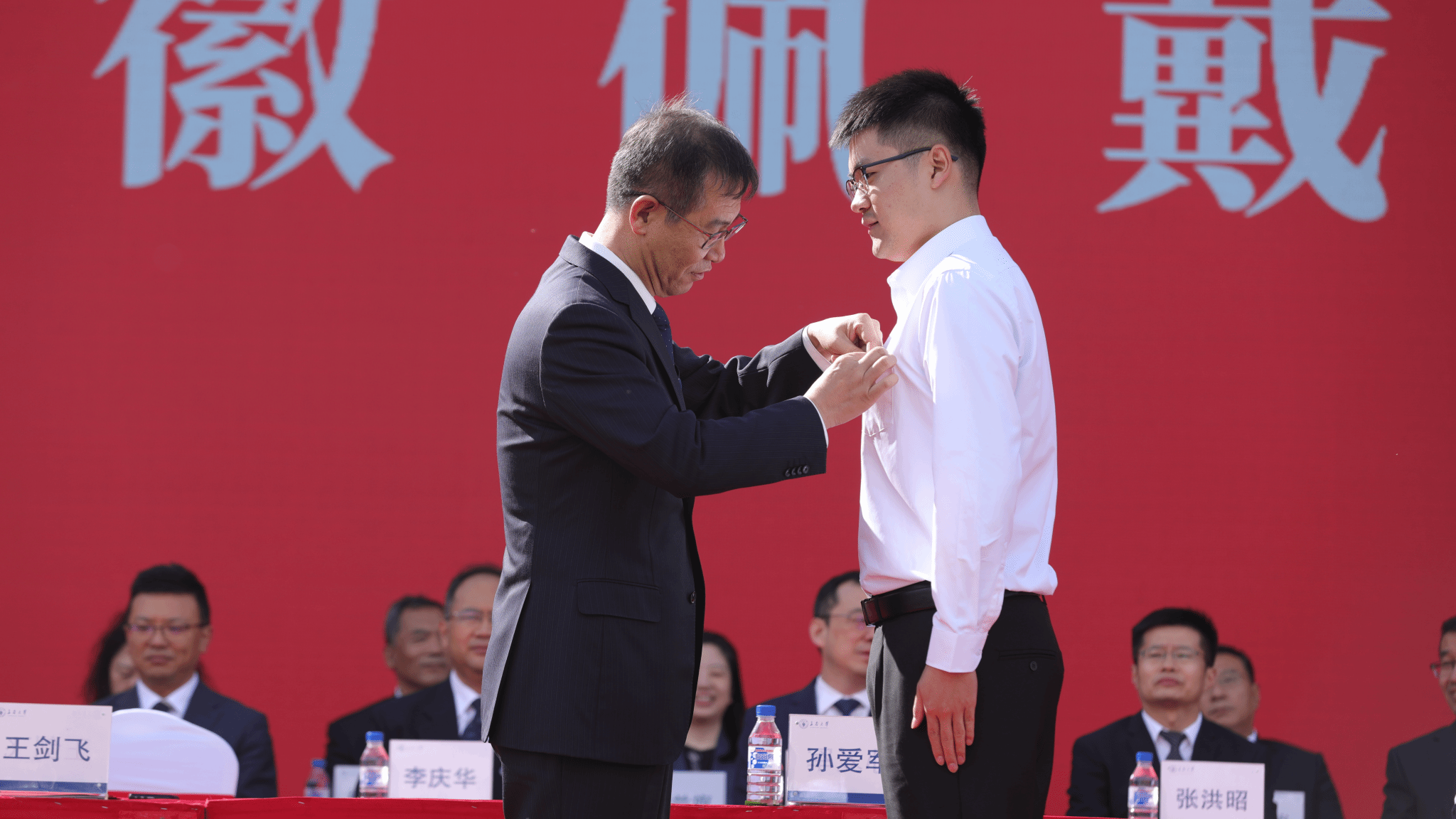 典礼在庄严的国歌声中启幕。学校党委书记孙爱军为新生代表佩戴欧冠联赛官网校徽。