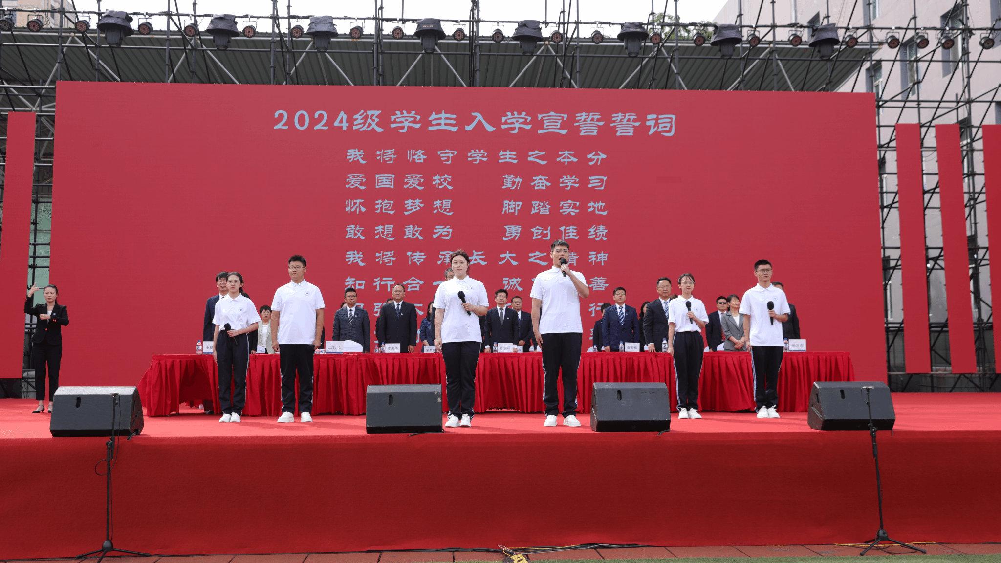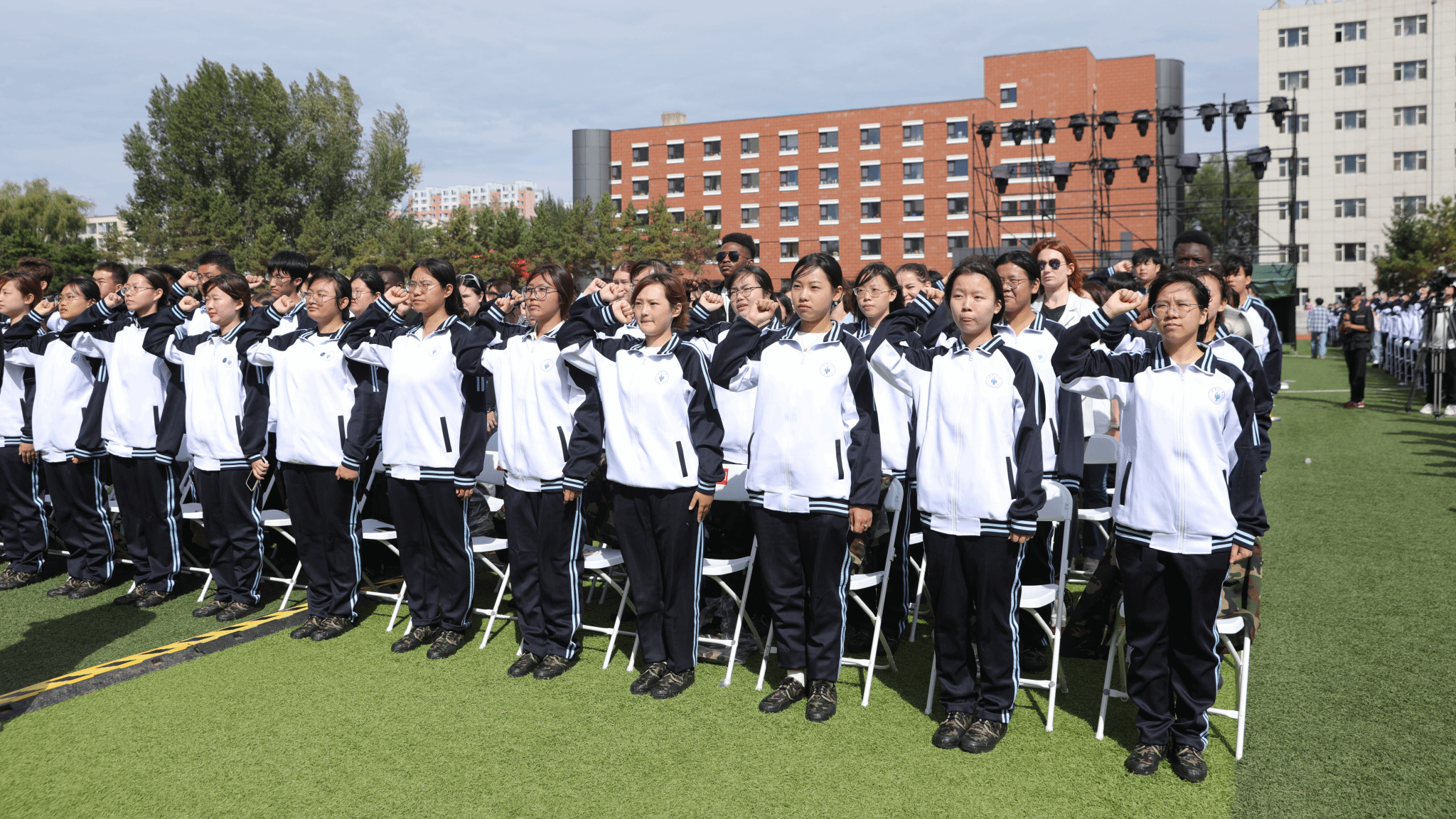 2024级学生全体起立进行入学宣誓。自此成为一名光荣的长大人,站在了人生新的起跑线上,以奋斗之姿续写长大新篇章。开学典礼通过欧冠联赛官网视频号直播,观看量1.3万人次。