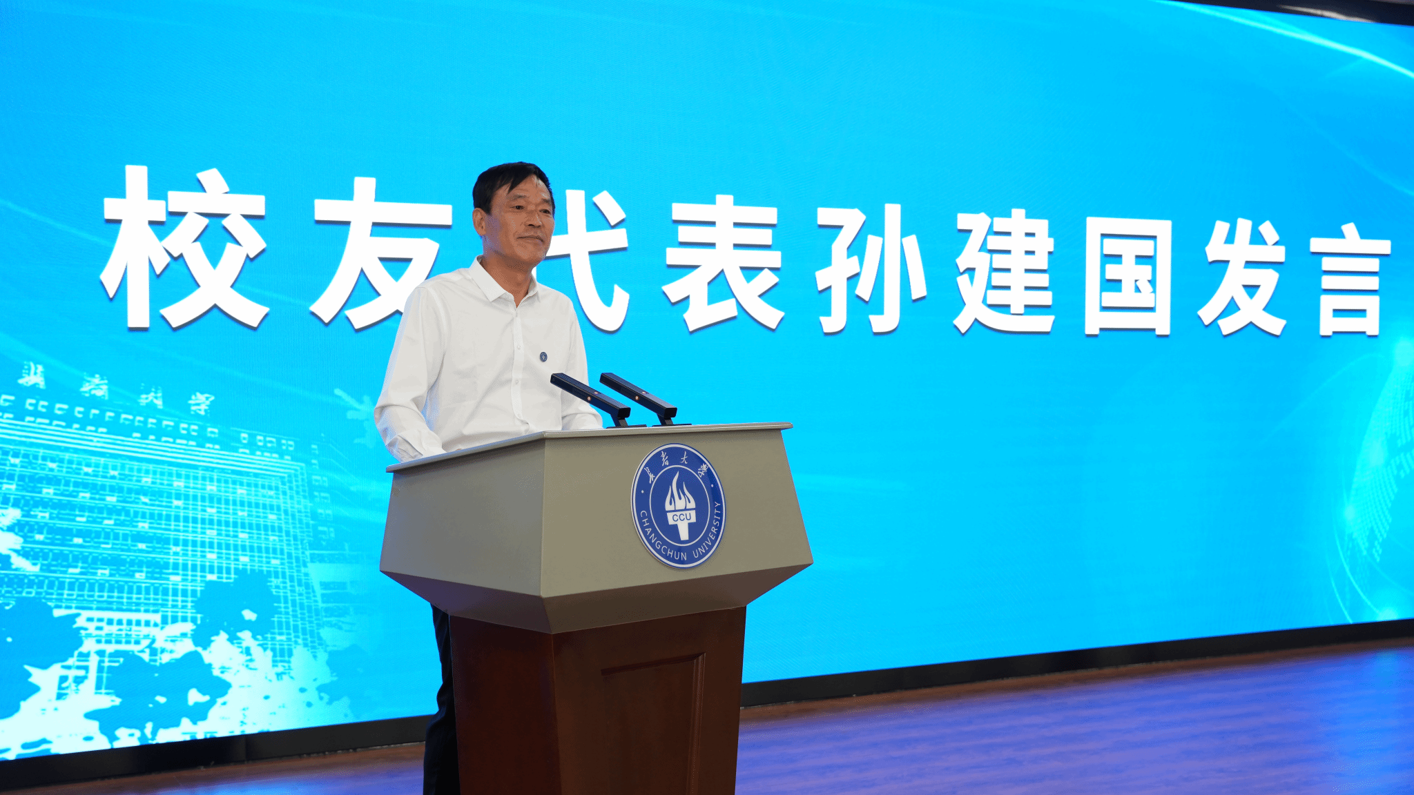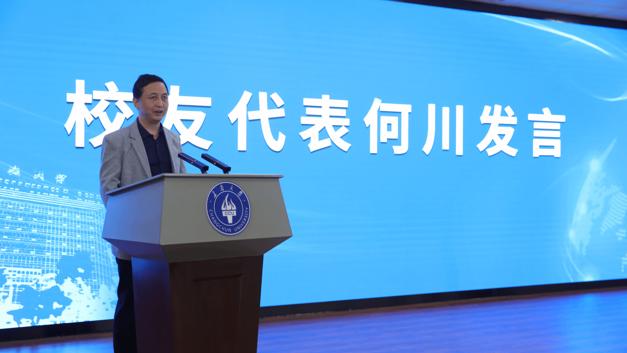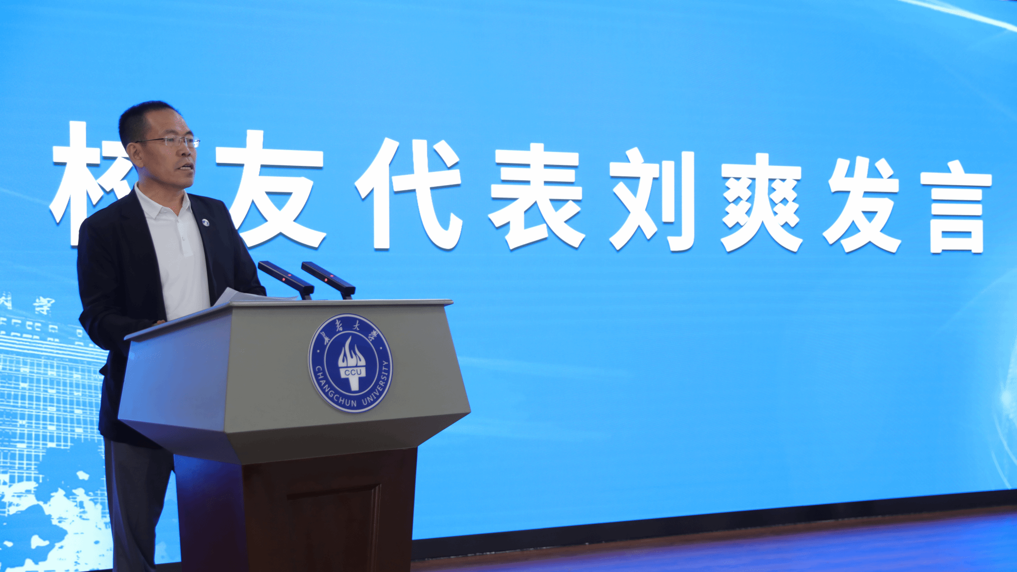 校友代表、长春市北国之春绿化公司总经理刘爽发言。刘爽表示,在几代长大人的努力下,母校已经从一个专科学校发展成为一个省内外知名的综合性大学,并已踏上向博士点迈进的新征程,作为长大学子倍感骄傲和自豪,将继续关注母校发展,支持母校建设,珍惜师生情谊,弘扬长大精神,在美丽中国建设中贡献自己的力量。